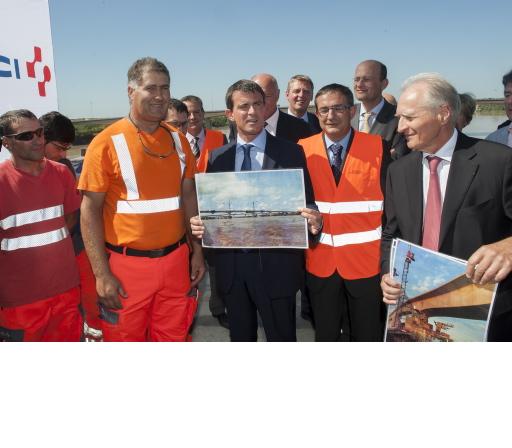 Manuel Valls et Alain Vidalies sur le chantier de la LGV SEA © Jean Michel Nossant