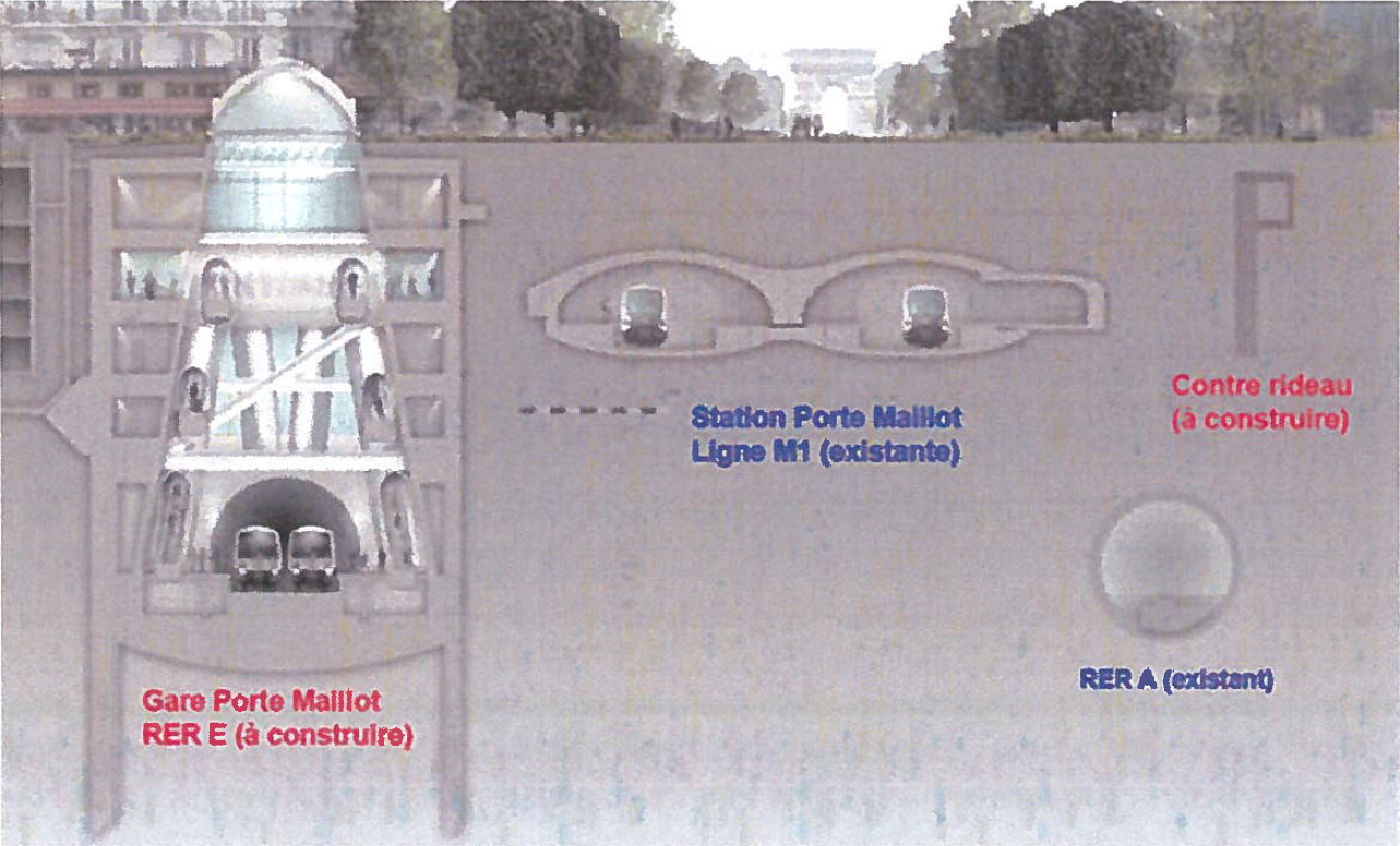 D’emblée, il ressort du premier rapport que le forage d’essai a été décidé « par le seul groupement d’entreprises, sans information préalable et donc, a fortiori, sans approbation du maître d’œuvre ». Le groupement d’entreprises a réalisé ce forage sur le site d’un contre-rideau à construire au sud de la station de métro Porte Maillot et du tunnel du RER A (alors que la gare Eole se situera au nord de ces ouvrages). Ce contre-rideau doit assurer, au moyen de tirants le reliant à la paroi sud de la future gare, un ancrage de cette paroi lors des terrassements.