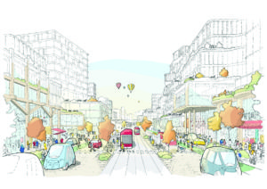 Pour sa part Sidewalk Labs, propose ses vues, en tenant compte de plusieurs révolutions dans les transports : l’arrivée des véhicules autonomes, que l’on pourra programmer pour emprunter certaines routes, les nouveaux services de mobilité comme les vélos partagés, et la possibilité de dessiner des partages virtuels et dynamiques des infrastructures.