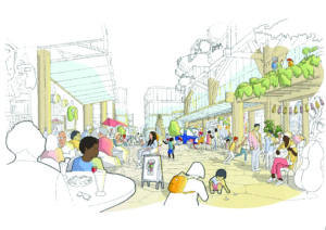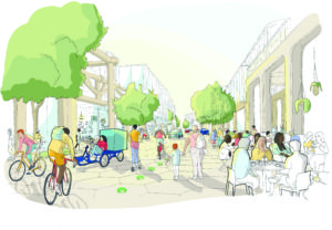 Géographiquement la cité idéale selon Sidewalk Labs s’inspire d’un modèle barcelonais, les boulevards formant un périphérique autour d’un réseau d’accesways et de laneways.