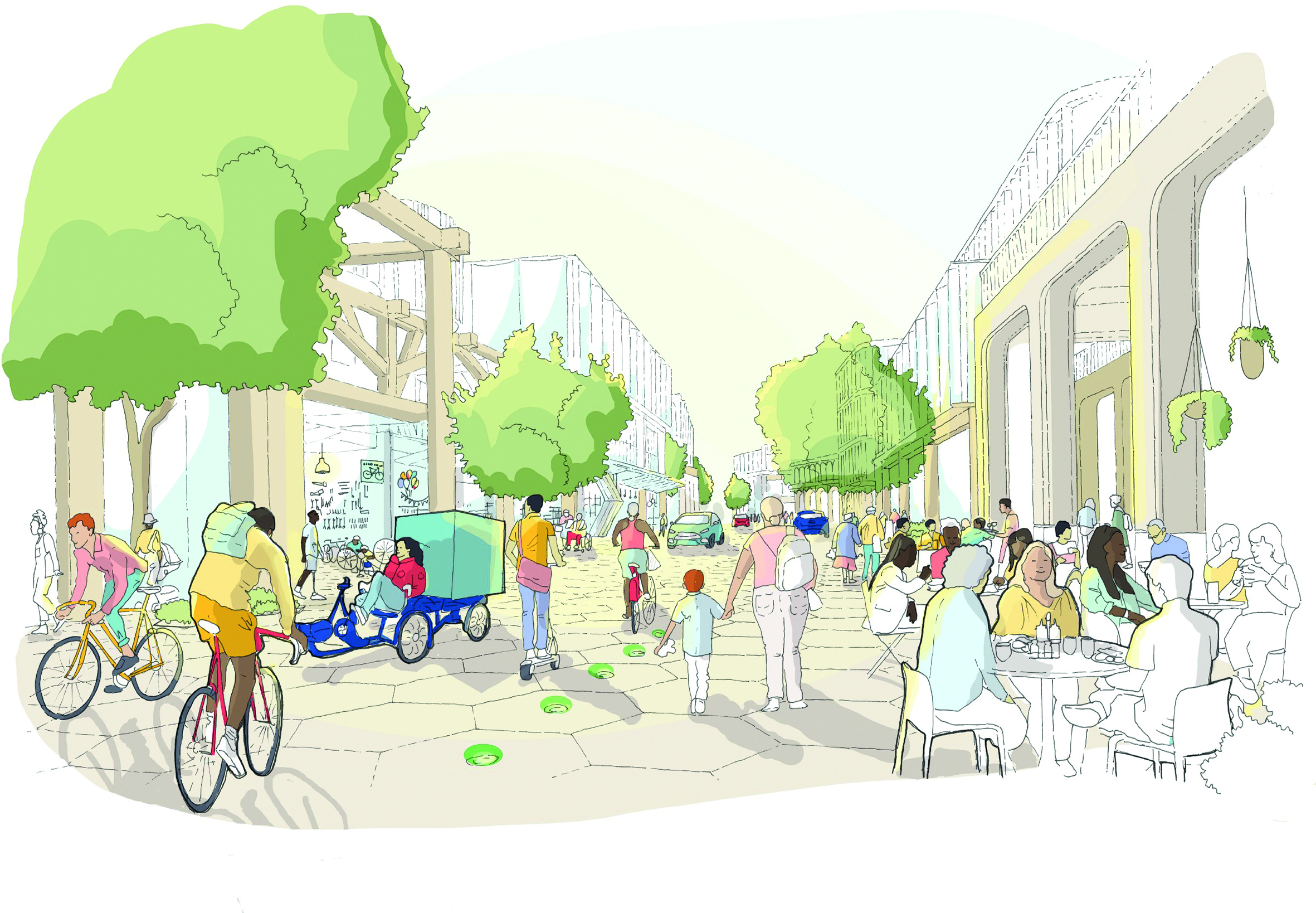 Sidewalk Labs énonce quatre principes. Un, les rues doivent être adaptées aux modes. Deux, elles doivent se distinguer entre elles selon la vitesse autorisée. Trois, il faut introduire de la flexibilité dans le partage de la rue. Et quatre, il faut rendre la rue au domaine public : transports en commun, vélos, piétons.
