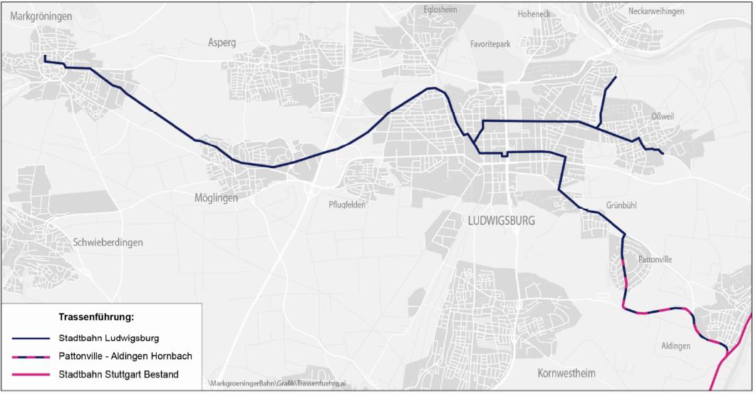 Un tram à plancher bas remplacera vraisemblablement le projet de BHNS, mais sa mise en œuvre sera certainement plus longue que le projet précédent. À noter que si les trams de Ludwigsburg et ceux de Stuttgart (SSB) ont des chances de se rejoindre un jour à Pattonville, le réseau de la capitale du Land est à plancher et quais hauts, donc incompatible avec le projet à plancher bas de la ville voisine.