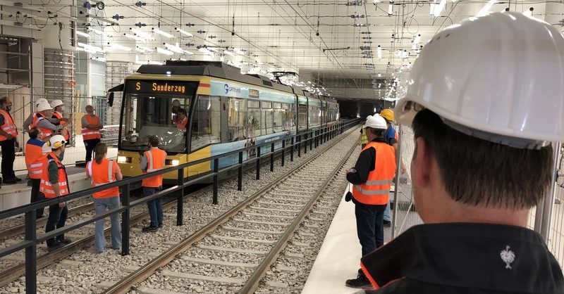 C’est dans le tunnel est-ouest sous la Kaiserstrasse qu’un premier tramway a circulé pour contrôler son inscription dans l’ouvrage d’art et le long des quais des nouvelles stations souterraines (de type métro). Les essais doivent suivre dans le tunnel nord-sud, entre la Marktplatz et le quartier au nord de la gare centrale. De plus, les différents types de matériel roulant (trams urbains et trams-trains) exploités par les VBK et le chemin de fer d’intérêt local Albtal-Verkehrs-Gesellschaft (AVG) sur le réseau de tram de Karlsruhe feront tour à tour l’objet de marches d’essais dans les nouveaux tunnels. Et pour ce qui est des circulations régulières dans ces tunnels, qui sont en construction depuis 2010, l’échéance actuellement envisagée est la fin 2021.