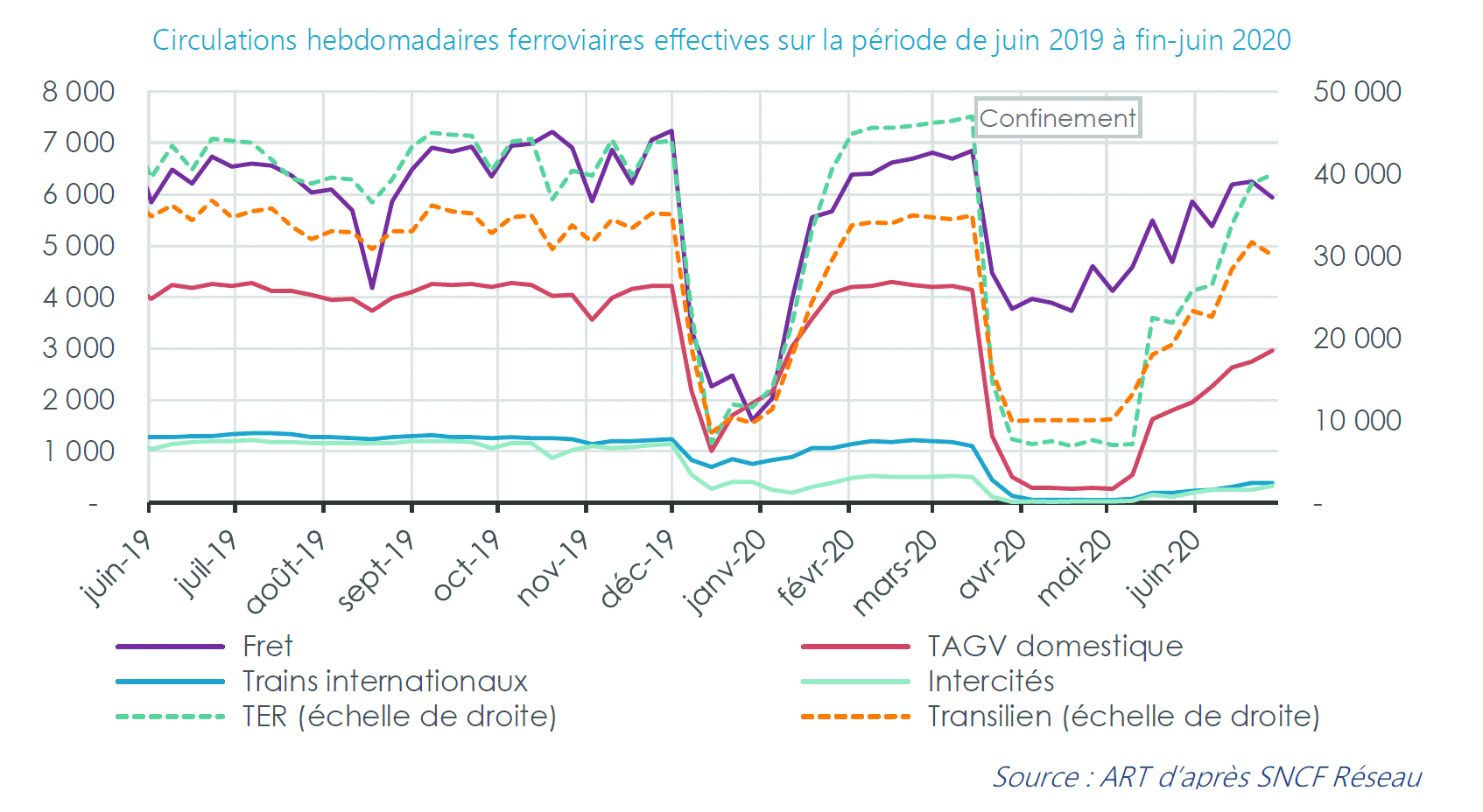 Au-delà de ce choc conjoncturel, les courbes de trafic révèlent une transformation structurelle. Les marchandises, comme les voyageurs, connaissent une certaine « dé-mobilité ». Depuis 10 ans, un découplage a vu le jour. Alors que le PIB reprenait son ascension, fut-ce à un rythme ralenti, les transports ferroviaires et routiers ont plafonné, comme le fait d’ailleurs, en monnaie courante, la production de biens manufacturés. La désindustrialisation est une des causes du découplage. Une économie fondée sur les services et le numérique limite les tonnages transportés. Ils diminuent d’ailleurs tendanciellement depuis plus de 40 ans. Il est donc illusoire de compter sur une hausse forte des volumes transportés pour asseoir un rebond du fret ferroviaire. D’autant que ce dernier est de plus en plus déconnecté des chaînes logistiques. Eurotunnel en est une illustration. Il passe sur les navettes transportant des camions 14 fois plus de tonnes que dans les trains de fret !