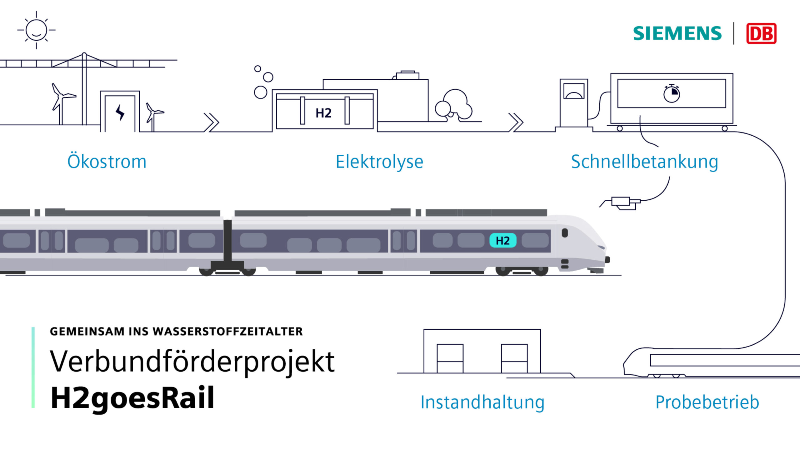 L’objectif est de tester, pendant un an, un système intégré comprenant un train à pile à combustible, un dispositif de ravitaillement rapide de ce dernier en hydrogène « vert » et un atelier de maintenance de la DB préalablement rééquipé.