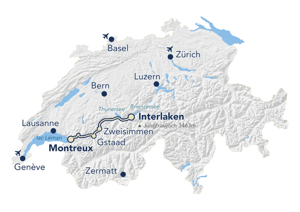 A bord de ces nouvelles voitures, les voyageurs peuvent choisir entre trois classes : première, deuxième et Prestige dont les 18 sièges grand confort sont toujours dans le sens de la marche ! Le trajet n’est pas des plus rapides – 115 km en 3 h15, à travers les paysages alpins aux confins des cantons de Vaud, de Fribourg et de Berne – mais les touristes venus du monde entier n’ont plus à quitter leur siège entre le lac Léman et les lacs de Thoune ou de Brienz, le changement d’écartement s’effectuant en quelques secondes. Actuellement, « en raison de la pandémie et de la situation géopolitique », le service de bout en bout est limité à un train par jour et par direction (les deux rames en circulation se croisent à Gstaad et ne permettent pas d’effectuer un aller-retour dans la même journée), mais à partir du 11 juin prochain, quatre allers et retours seront proposés chaque jour entre les gares de Montreux et d’Interlaken Ost.