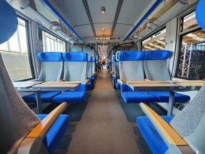 La rénovation permet aussi d’intégrer des fonctionnalités de « train connecté » avec un système d’information voyageurs en temps réel, du wi-fi, de la vidéoprotection avec transmission en temps réel, ou encore avec un système de comptage automatiques des voyageurs.
