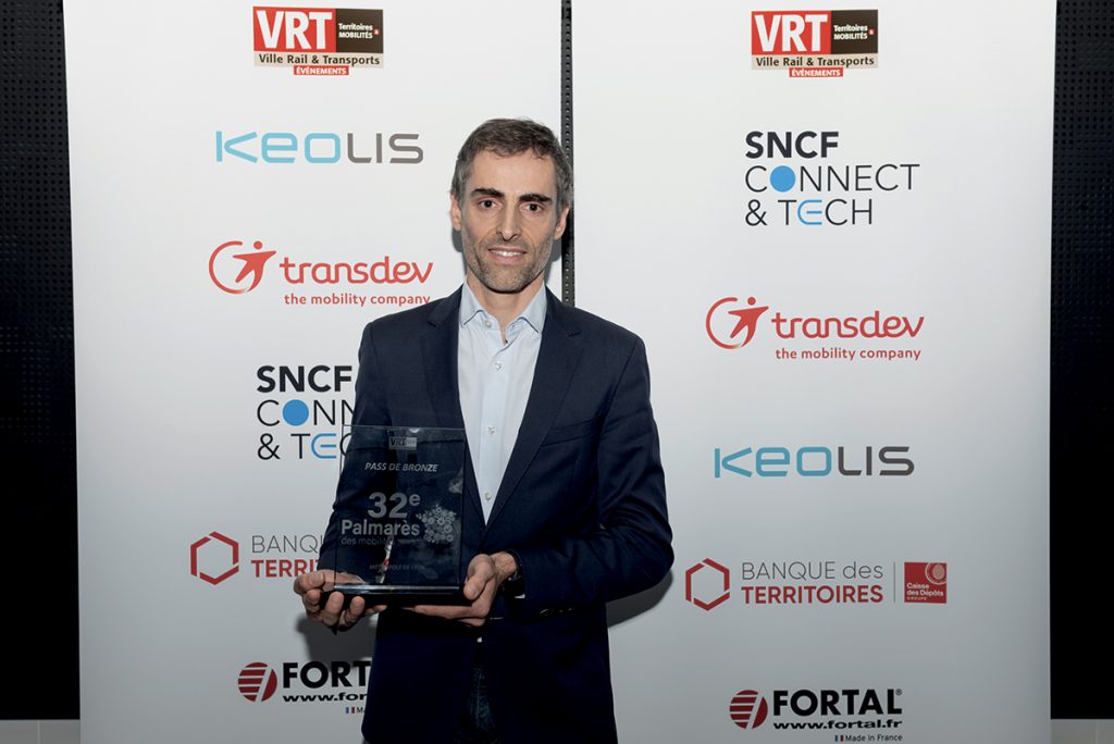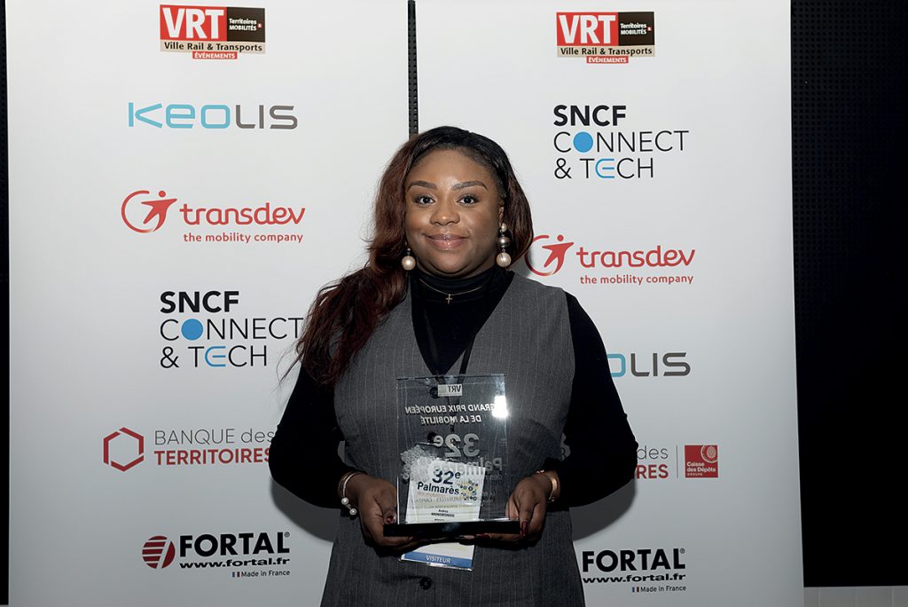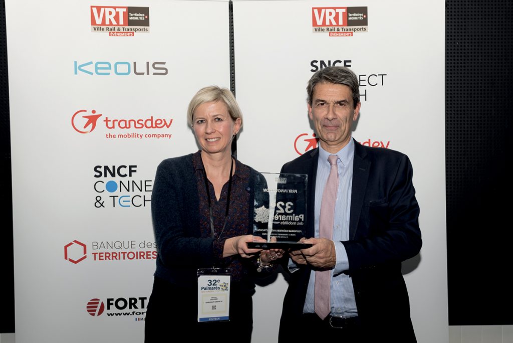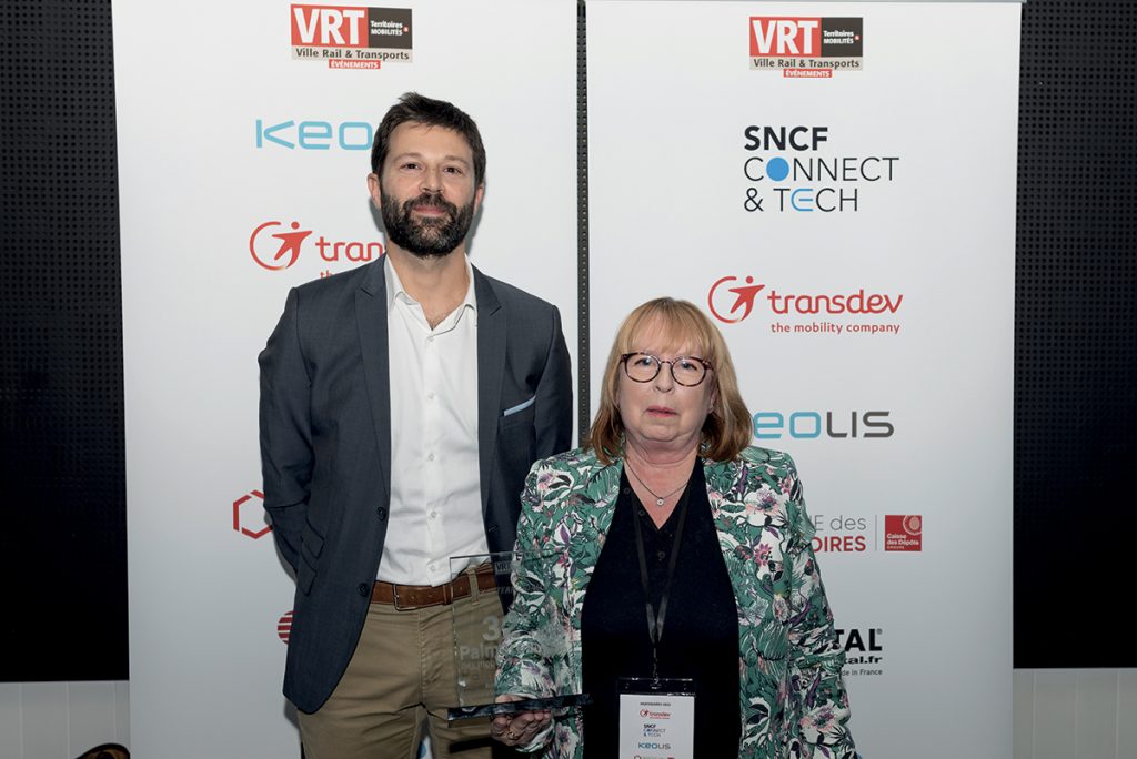 Remettant : Bastien Soyez, directeur RSE France, Transdev. Béatrice de François, vice-présidente en charge des transports en commun, Bordeaux Métropole.