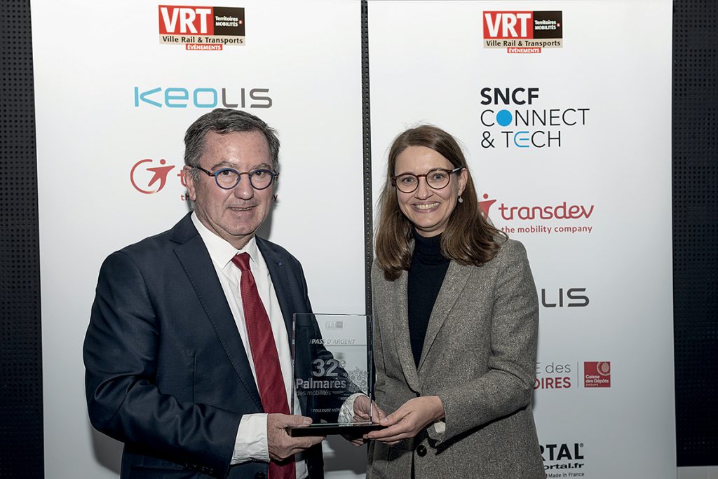 Remettant : Annelise Avril, directrice générale France, Grands réseaux urbains, Keolis. Jean-Michel Lattes, vice-président de Toulouse Métropole et président du SMTC Tisséo.