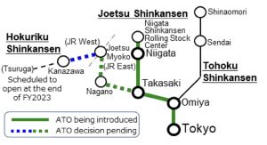 Parallèlement, JR East cherche également à étendre la conduite automatique au Hokuriku Shinkansen, avec JR West dans le cadre du protocole d’accord de 2023, et au Tohoku Shinkansen (voir plan ci-dessus).