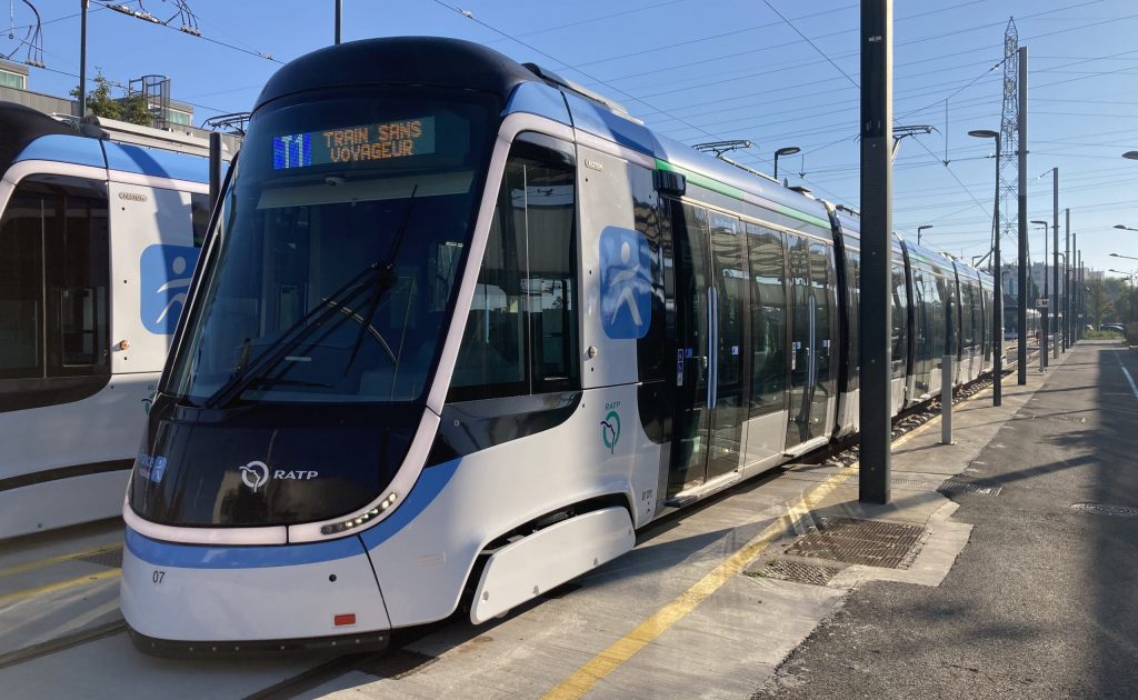 Jusqu’à présent visible sur des photos publiées lors de l’arrivée de la première rame en mars dernier, le TW20 a reçu la visite de Valérie Pécresse, présidente de la région Île-de-France et d’IDFM vendredi 4 octobre au site de maintenance et de remisage (SMR) de Villetaneuse. C’est sur ce site RATP, destiné en premier lieu au parc du T8, que sont garés et entretenus les nouveaux tramways en attendant leur mise en service sur le T1 (les deux lignes communiquent par un raccordement, à proximité de la gare de Saint-Denis). Après de premiers essais sur ce SMR, c’est sur le T8 et le T1 que le TW20 a entamé ses tests dynamiques en juin et juillet, en particulier pour s’assurer que le tram passe partout, y compris dans les parties basses du gabarit. La formation de quelque 300 agents concernés à différents titres a quant à elle débuté en septembre, alors que l’autorisation de circuler est attendue pour le 26 novembre… à temps pour sa mise en service commercial. Le SMR du T8 assure cette mise en service car le SMR du T1 à Bobigny est en travaux pour recevoir le TW20, alors qu’un nouveau SMR est en construction à Montreuil dans le cadre du prolongement à l’est.