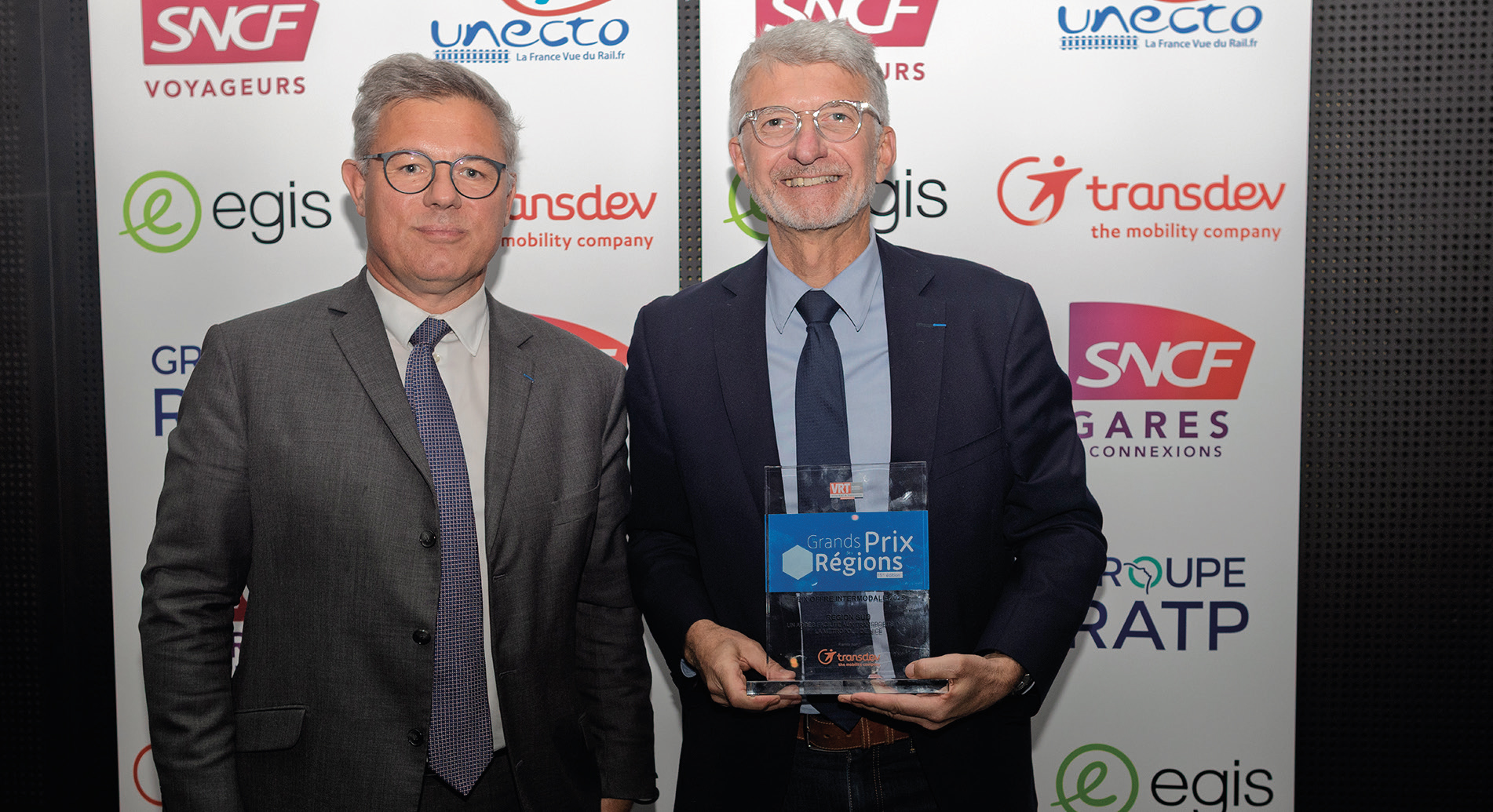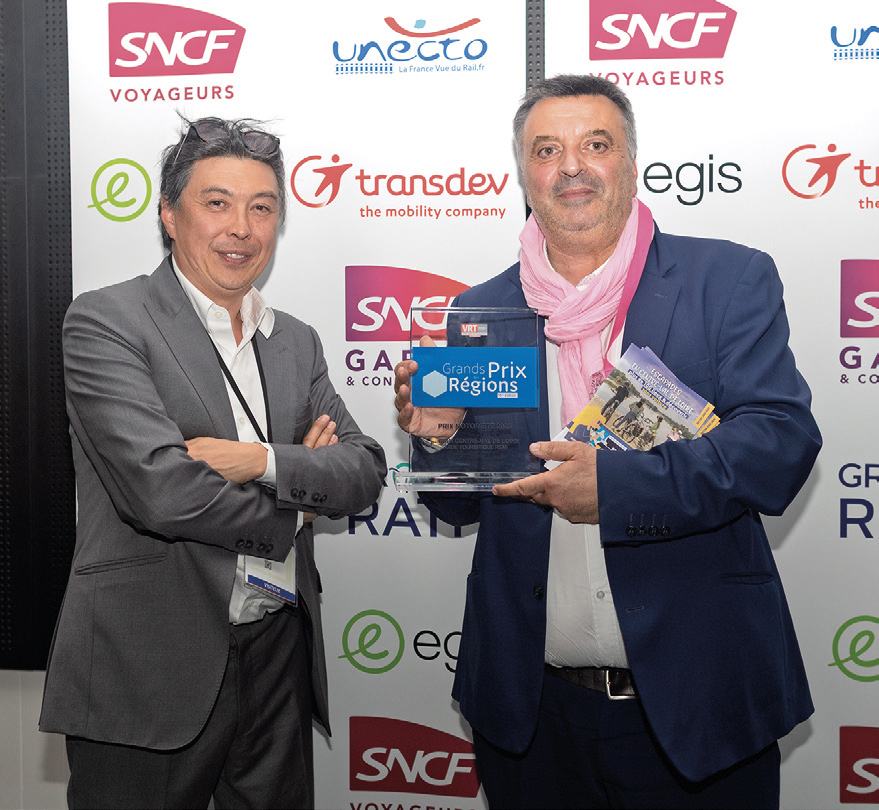 GRAND PRIX TERDÉCERNÉ À LA RÉGION NOUVELLE AQUITAINE Jean-Aimé Mougenot, directeur TER délégué SNCF Voyageurs a remis le Grand Prix à Didier Duchier, directeur général adjoint en charge des mobilités pour la région Nouvelle-Aquitaine.