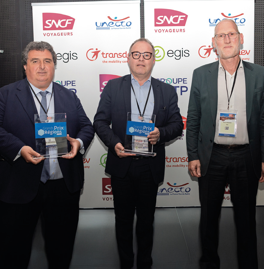 Le Grand Prix TER a été remporté par la Nouvelle-Aquitaine pour ses efforts en faveur du report modal et plus particulièrement sa démarche visant à cadencer la fréquence de ses trains (lire ci-contre). Sept prix thématiques ont également récompensé des régions pour leurs politiques en faveur des transports publics. Le jury mis en place par VRT a eu la délicate mission de trancher entre de nombreuses initiatives particulièrement intéressantes que nous avons présentées dans notre numéro de mai. Il s’est montré particulièrement sensible aux politiques d’accroissement de l’offre, d’intermodalité et de simplification de l’usage. Un Grand Prix du Tourisme Ferroviaire a également été décerné par l’Unecto, la fédération des chemins de fer touristiques et des musées à caractère ferroviaire de France, dont l’objectif est notamment de promouvoir la filière.