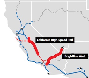 Une autre LGV est prévue, entre Los Angeles et Las Vegas (dans le Nevada), et devrait être mise en service 2028, année des Jeux olympiques à L.A.