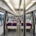 A l’intérieur des voitures, le bleu d’origine a laissé la place à une combinaison de teintes bordeaux en bas de caisse et blanc cassé autour des portes et des fenêtres. Les sièges remplacés par des modèles antilacérations conservent la même disposition qu’auparavant, avec même des strapontins permettant des positions assis-debout. La lumière a été augmentée à la demande des voyageurs favorisant l’impression de confort et de sécurité.