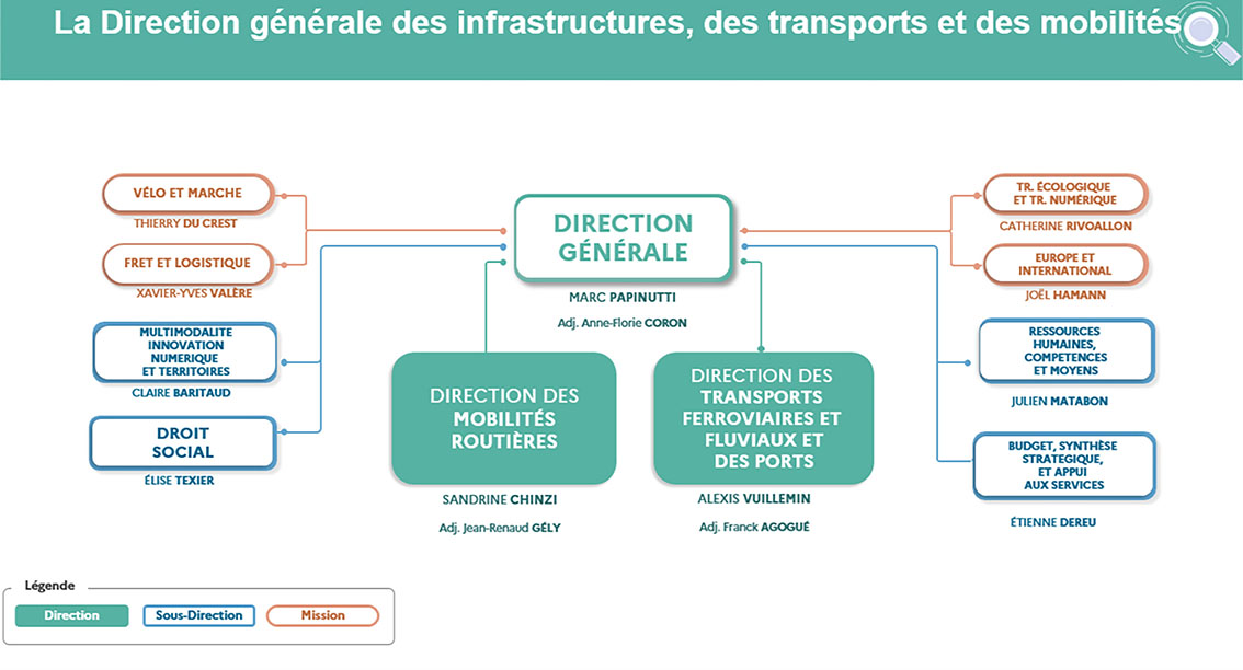 En mars, l’actuelle Direction générale des Infrastructures, des Transports et de la Mer rattachée au ministère des Transports va faire sa mue en changeant d’organisation et de mode de fonctionnement. Concrètement, il va être mis fin à la séparation entre la direction des services de transport et la direction des infrastructures. A la place, deux nouvelles directions modales et transverses vont voir le jour : d’une part, la direction des mobilités routières (qui regroupe la direction des routes et les transports routiers dont les taxis) avec à sa tête Sandrine Chinzi, et d’autre part, la direction des transports ferroviaires et fluviaux et des ports (rassemblant à la fois les infrastructures et les services de transport), chapeautée par Alexis Vuillemin. Marc Papinutti reste à la tête de la DGITM.