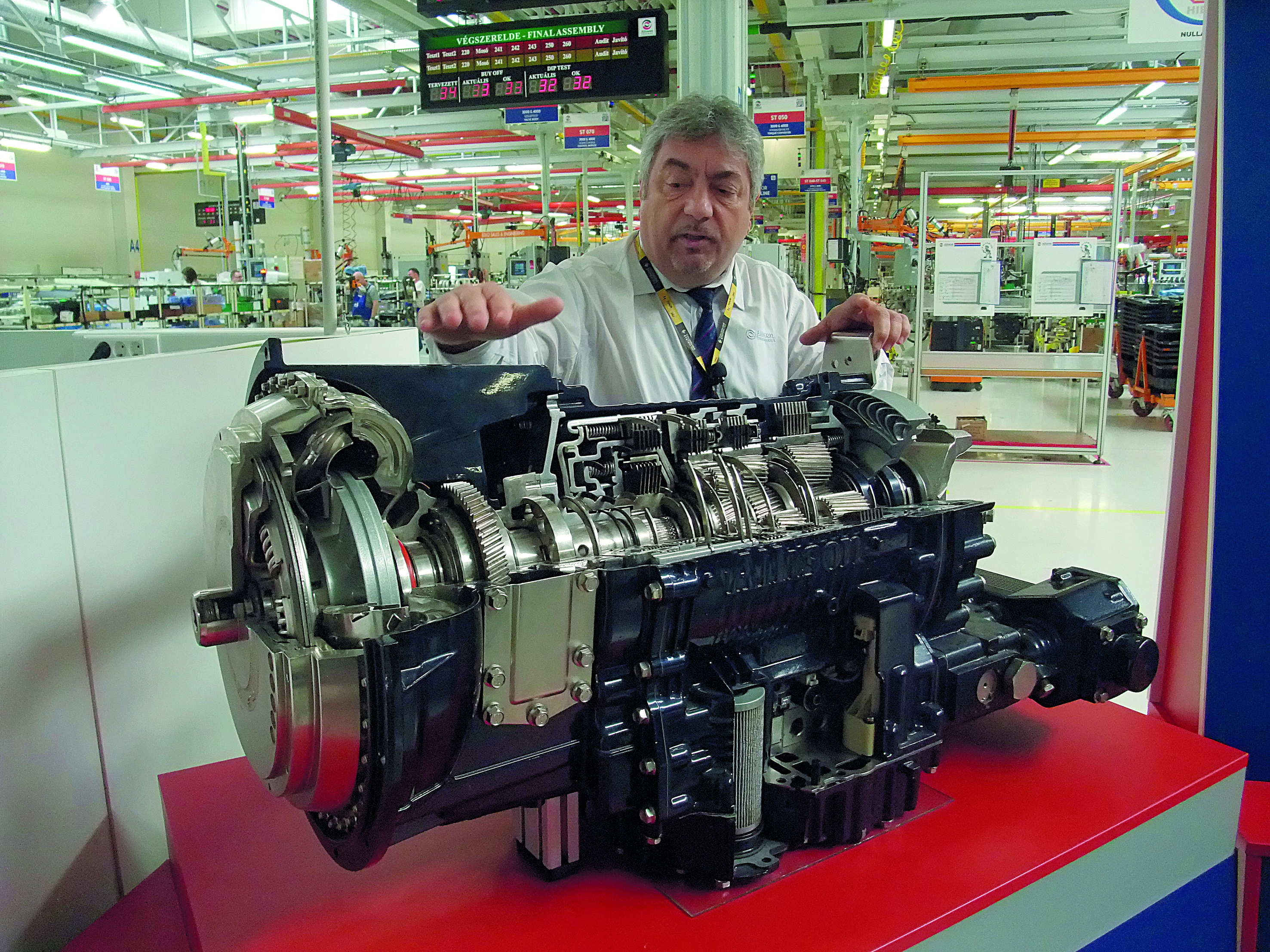 A Szentgotthard, on ne fait pas de stock : chaque transmission a un client attitré dès son entrée en fabrication. La production s’y organise en deux services de huit heures, cinq jours par semaine. La chaîne d’assemblage, longue de 110 m, adopte, assez classiquement, une forme de « U ».