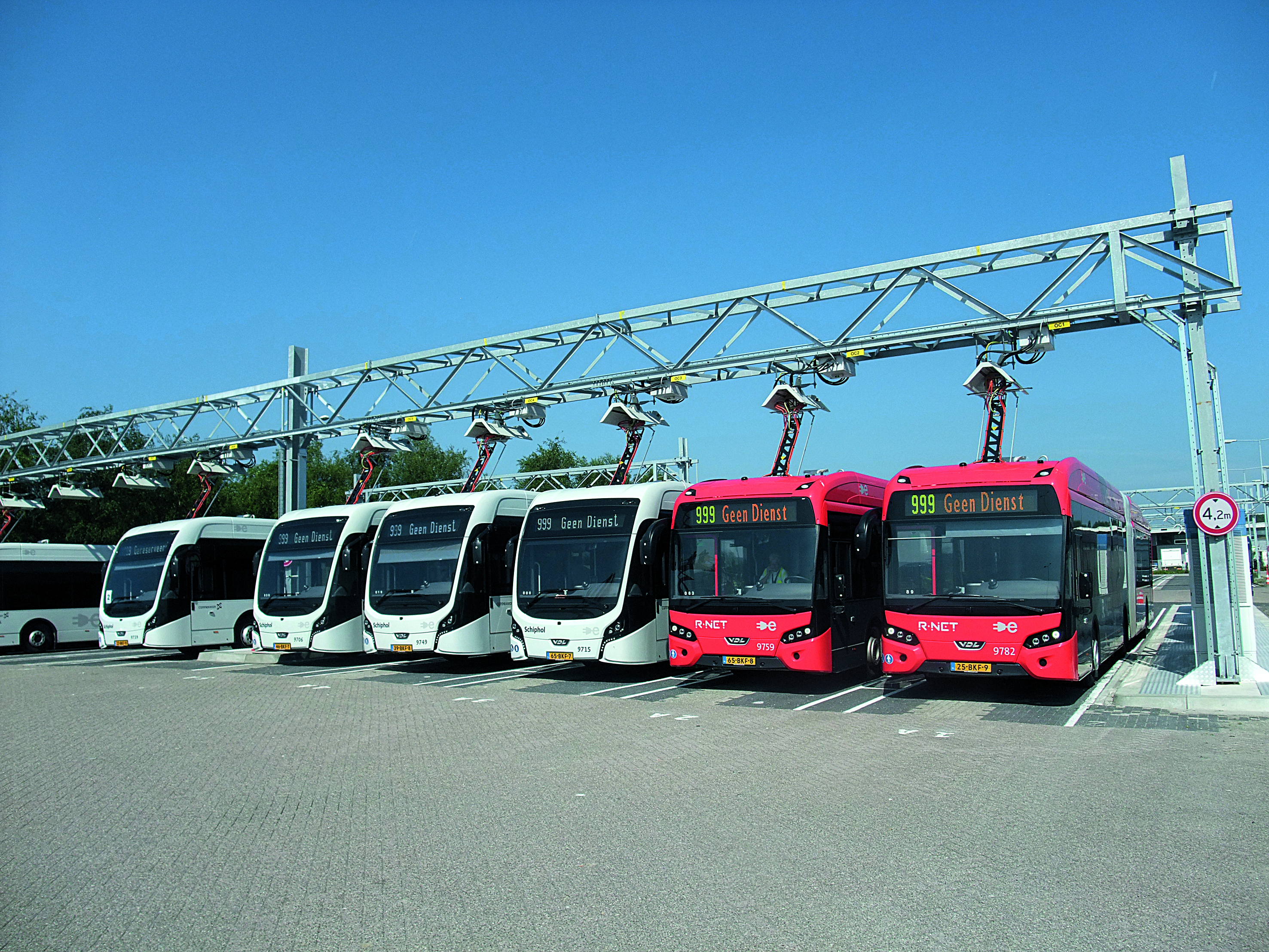 Depuis l’été dernier, cent autobus électriques articulés du constructeur néerlandais VDL sont en service autour de l’aéroport international d’Amsterdam-Schiphol, sur le territoire de l’autorité organisatrice Amstelland-Meerlanden. Chaque jour, ils parcourent globalement plus de 30 000 km. C’est pour le moment la plus grosse exploitation d’autobus 100 % électriques de toute l’Europe.
