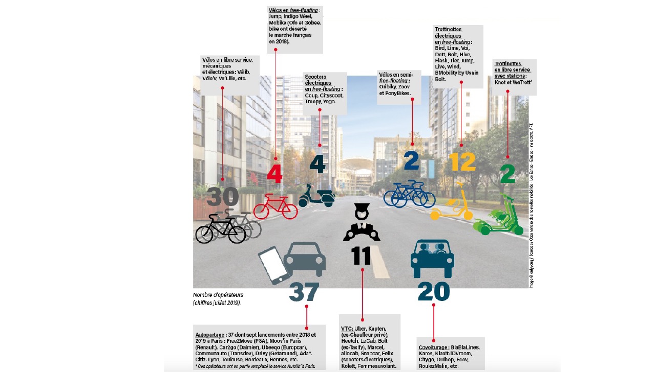 Les projecteurs se sont braqués sur elles, mais elles ne représentent qu’une part infime du marché des transports urbains : « Le bilan du covoiturage en Ile-de-France pendant les grèves SNCF du printemps 2018 et la subvention publique de 2 euros par voyage est de 2 000 trajets par jour sur un total de 41 millions déplacements quotidiens ! », rappelle Jean Coldefy, directeur du programme Mobilité 3.0 Atec ITS France, dans une tribune publiée en mai dans Le Monde. « Le bilan national de l’autopartage montre que sa clientèle […] utilise les véhicules pour l’essentiel le week-end sur des distances moyennes de 80 km. L’impact sur la mobilité quotidienne est donc quasi nul », poursuit-il. Bref, une révolution très médiatisée mais très douce au final.