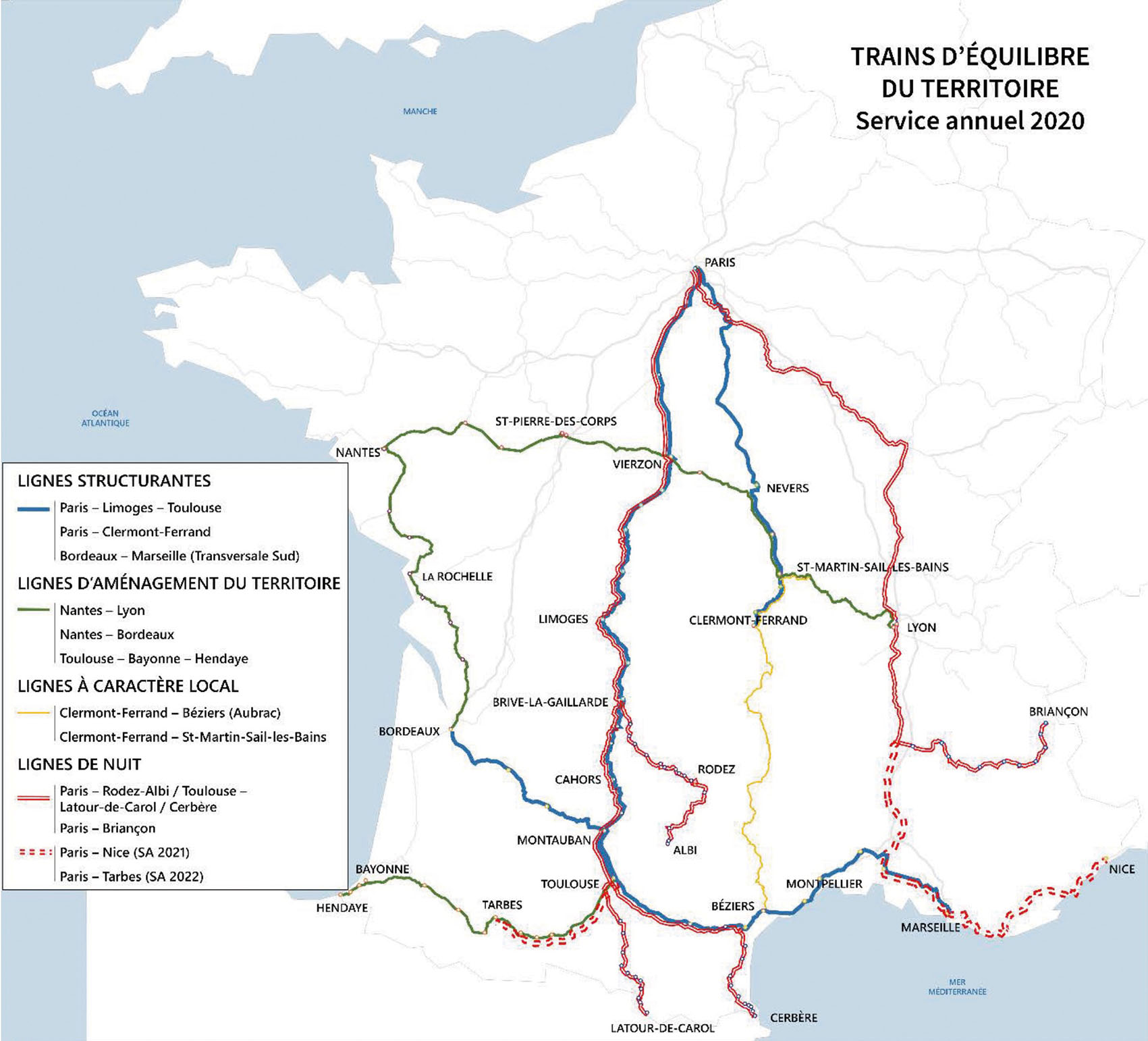 Un rapport gouvernemental portant sur le développement de nouvelles lignes de trains d’équilibre du territoire (TET) de jour et de nuit a été déposé le 20 mai au Parlement pour faire l’objet d’un débat. « Pour les trains de jour, il s’agit d’apprécier quelles adaptations du réseau seraient opportunes, sans remettre en cause l’équilibre issu des accords de reprise d’anciennes lignes de TET par les régions », indique le ministère des Transports.