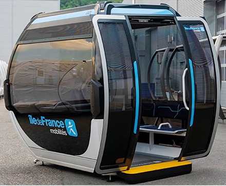 Le prototype de la cabine du premier téléphérique francilien a été présenté le 22 juin. Jusqu’à dix passagers pourront monter à bord.