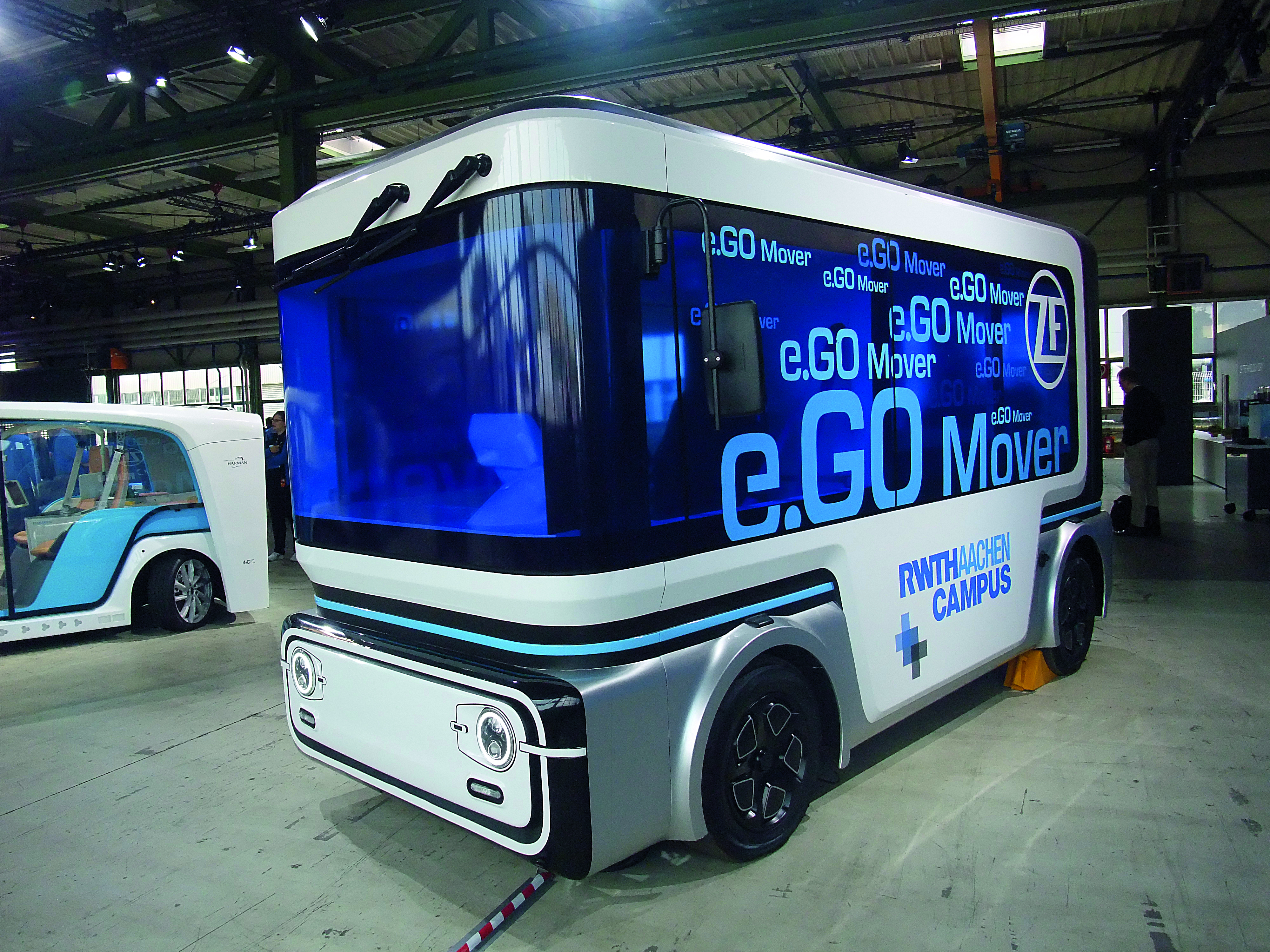 L’équipementier ZF a par ailleurs récemment fondé une joint-venture avec e.Go Mobile AG pour la production en série du tout nouvel e.Go Mover. Il s’agit d’un concept de plateforme, qui pourra recevoir différentes carrosseries. Le prototype, dévoilé à Friedrichshafen, est dévolu au transport de voyageurs. Ce minibus possède encore un emmarchement, qui aura disparu sur les véhicules de série, afin qu’ils satisfassent pleinement aux critères d’accessibilité, avec emplacement réservé pour un fauteuil roulant. Sur ce prototype, la place du conducteur a été conservée, mais l’e.Go Mover est, en réalité, conçu pour la conduite autonome de niveau 4. Il doit être homologué en toute fin d’année. Son châssis, ses trains de roulement, sa direction, sa chaîne cinématique, son supercalculateur ProAI doué d’une intelligence artificielle, ainsi que l’ensemble des différents capteurs requis pour le niveau 4 sont intégralement fournis par ZF. Ce véhicule 100 % électrique dispose de dix heures d’autonomie en trafic urbain. Les premiers e.Go Mover de série pourraient entrer en service commercial dès la fin 2019. Ils seront construits à Aix-la-Chapelle, sur un site de production aménagé pour disposer, à terme, d’une capacité de 10 000 véhicules par an. Car l’équipementier s’attend d’ores et déjà à une demande de l’ordre du million d’unités dans les cinq à sept prochaines années !