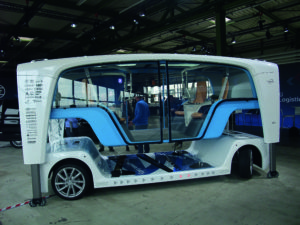 L’idée est simple : « La carrosserie, on l’achète, tandis que la plateforme, on la partage ! » Chaque ménage pourrait ainsi posséder son propre salon sans roues, pour lequel il louerait les roues, ou plus exactement la plateforme technique, le temps dont il en a besoin pour effectuer un déplacement. Cette plateforme autonome est, de surcroît, dotée d’une extraordinaire maniabilité, puisque ses roues avant peuvent braquer selon un angle de 75°, contre 40° pour une automobile classique, et que ses roues arrière sont également directrices, avec un angle maximal de 14°.