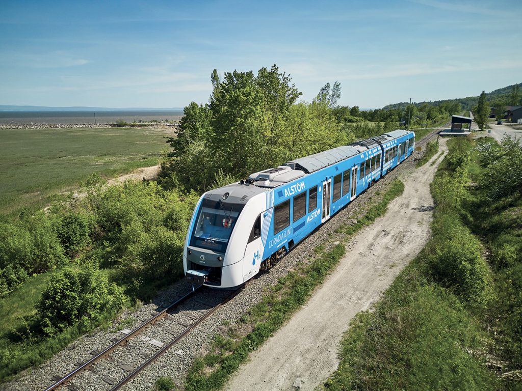 Alstom rappelle que le réseau ferré nord-américain est à un pour cent électrifié seulement et que les distances y sont élevées. Le constructeur a lancé un centre d’innovation au Québec pour la décarbonation des transports, qui explore aussi bien la solution hydrogène que les batteries. Plus près d’ici, 12 Régiolis H2 ont été commandés par quatre régions (Auvergne Rhône-Alpes, Bourgogne-Franche-Comté, Occitanie, Grand Est) dans le cadre d’un des projets de décarbonation menés par la SNCF (avec l’AGC à batteries, le TER hybride et les biocarburants). Ces rames « H2 », qui sont en fait bimodes, car elles seront alimentées en électricité par pantographe sous caténaire, devraient faire parler d’elles l’an prochain, avant d’accueillir leurs premiers voyageurs fin 2025. L’hydrogène prend également le relais « quand la caténaire s’arrête » dans le projet de wagon générateur pour locomotive fret. Avec ce wagon attelé à une locomotive électrique, Alstom a en quelque sorte « réinventé le tender », dans le cadre d’un projet mené avec Engie pour Nestlé Waters.