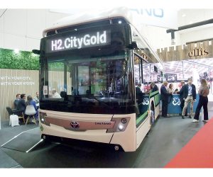 Avec le H2.City Gold, Caetano fait équipe avec Toyota Dévoilé en 2019, puis commercialisé l’année suivante, le H2.City Gold est l’autobus standard à hydrogène du constructeur portugais Caetano qui, pour la pile à combustible, fait équipe avec Toyota. Cette pile de 60 kW alimente indifféremment un moteur Siemens de 180 kW et des batteries de 44 kWh. Profitant, tout comme Arthur, du retrait de Solaris dans l’appel d’offres initial de dix véhicules lancé par l’exploitant viennois Wiener Linien, Caetano a mis à disposition, cet été, son H2.City Gold sur la ligne 39A (Heiligenstadt-Sievering) qui doit recevoir des autobus à hydrogène dès 2025.