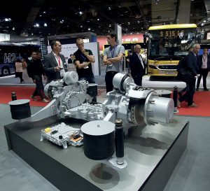 L’essieu-portique motorisé de ZF économise l’énergieLe célèbre équipementier allemand de Friedrichshafen avait apporté à Busworld son essieu-portique motorisé de toute nouvelle génération pour autobus à plancher surbaissé et transmission électrique. Cet essieu autorise des économies d’énergie jusqu’à 10 %, comparé à ceux de la génération précédente. Et il se révèle 20 % plus puissant pour gravir des pentes avec des véhicules simple-articulés de 29 t équipés d’un seul essieu moteur.