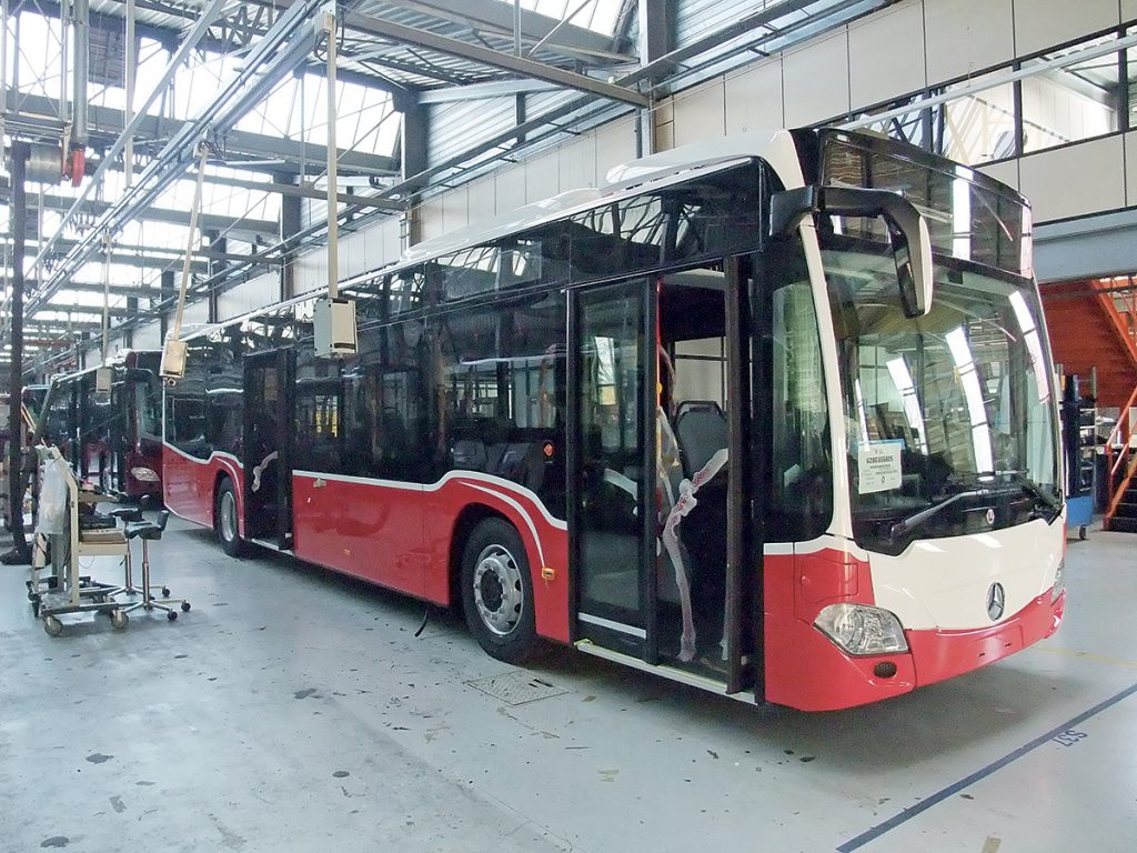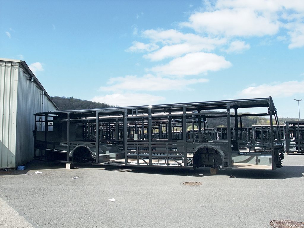En région Grand-Est, l’histoire du site industriel de Ligny-en-Barrois, situé dans le département de la Meuse, commence dès 1962, avec l’édification d’un tout premier bâtiment pour la fabrication de structures métalliques. En 1980, ce site est racheté par Otto Kässbohrer, génial entrepreneur allemand à qui l’on doit l’invention de la « caisse-poutre » autoportante, qui allait bientôt universellement supplanter l’architecture traditionnelle avec caisse et châssis séparés pour la construction des autocars et autobus. Un an après le rachat du site, sort de chaîne, à Ligny, le premier autocar de la marque Setra, dont le nom n’est autre que la contraction de l’allemand « selbsttragend », qui se traduit justement par autoportant. Bientôt, une centaine d’unités y sont produites chaque année. En 1986, l’autobus urbain fait son apparition à Ligny. Il deviendra bientôt le cœur de métier de l’usine meusienne. Un premier changement institutionnel survient en 1995, année où le groupe allemand Daimler rachète la marque Setra, pour constituer, avec Mercedes, l’entreprise EvoBus. En 1996, débute, dans l’usine de Ligny, la construction de l’autobus Mercedes Citaro C1, destiné à y remplacer son prédécesseur, le O 405N, qui était le standard de seconde génération à plancher surbaissé du VdV (Verband Deutscher Verkehrsunternehmen, Association allemande des entreprises de transport). Et il n’y aura, au demeurant, jamais de troisième « standard VdV », les constructeurs allemands reprenant la main, à la faveur d’une évolution générale dans l’Union européenne, voulant que les exploitants renoncent à toute velléité de conception technique pour se limiter à un rôle de prescripteur…