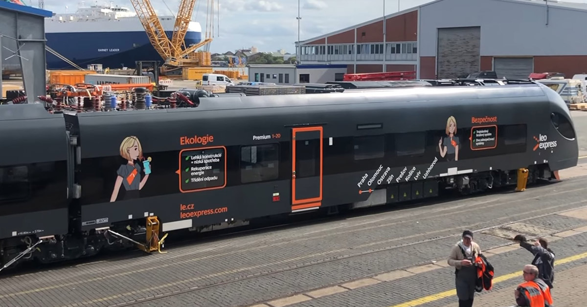 Trois automotrices Sirius, destinées à l’opérateur privé tchèque Leo Express, viennent d’arriver en Europe, par le port de Brême, pour être aussitôt acheminées vers l’anneau d’essais ferroviaires de Velim, en République tchèque.