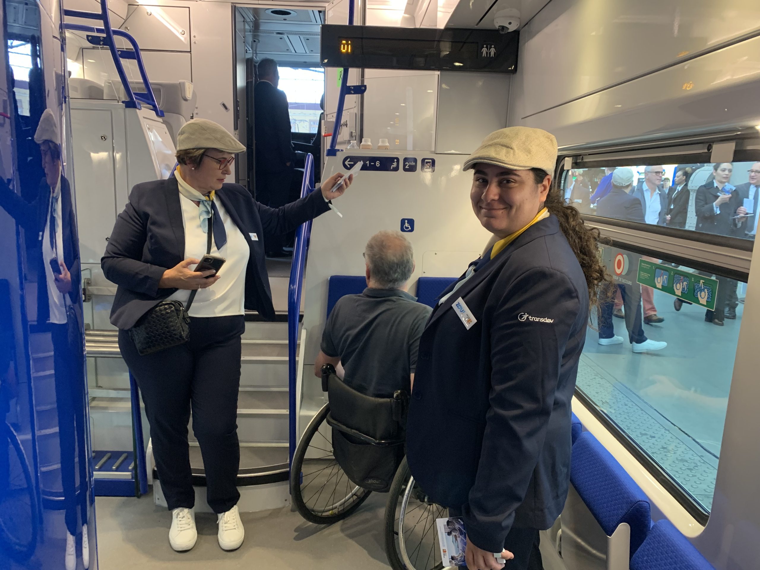 Des contrôleuses dans l’espace PMR de la rame Omneo Premium