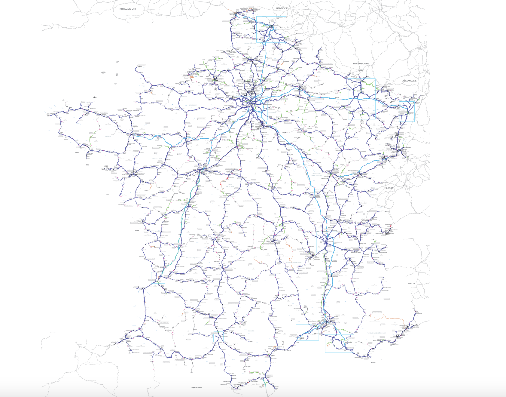 Il emprunte à Michel Houellebecq La carte et le territoire (Goncourt 2010), en y ajoutant bien sûr le train « qui dessine la France ». Carte du réseau ferré national à l’appui.