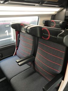 En première classe, les fauteuils sont plus larges et la tablette plus grande (avec la possibilité d’avoir une petite tablette si on ne veut pas la déplier complètement), un miroir « de courtoisie » est disponible et un meilleur système d’éclairage avec liseuse a été mis au point. Citons aussi l’aménagement de quatre places pour les personnes à mobilité réduite ainsi qu’un emplacement prévu pour deux vélos (un dispositif qui n’existait pas jusque-là sur cet axe).