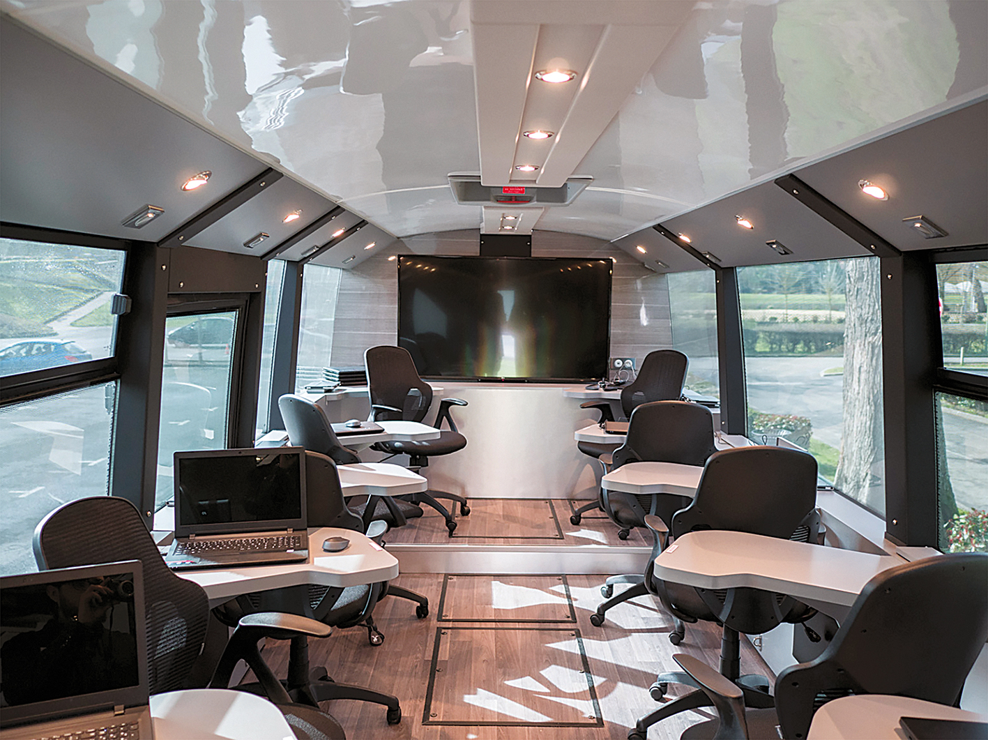 Intérieur du véhicule de Télé imagerie médicale mobile réalisé pour l’hôpital de Lannemezan. Le véhicule est réalisé par l’entreprise Toutenkamion, qui s’est fait une spécialité de fabriquer ou transformer des véhicules en fonction de besoins particuliers (hôpital de campagne, cinémobile, cliniques mobiles, etc.). « Cela n’existe ni comme champ d’études, ni comme domaine statistique », constate Mireille Apel-Muller, la directrice de l’IVM-Vedecom. D’où le programme de recherches d’un institut qui les croit promises à un bel essor.