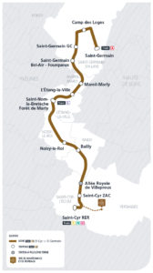 A peine trois mois après l’arrêt des trains sur la Grande Ceinture Ouest, les rails ont commencé à être posés fin octobre sur le tram-train T13. Englobée dans un nouveau tram-train de Saint-Cyr à Saint-Germain-en-Laye, l’ancienne branche GCO de la ligne L de Noisy-le-Roi à Saint-Germain-Grande-Ceinture peinait à dépasser les 400 voyageurs par jour. Sa conversion en tram-train avec prolongement à ses extrémités, au sud vers Saint-Cyr à la rencontre du RER C et des Transiliens N et U et au nord vers la gare du RER A de Saint-Germain-en-Laye, devrait lui permettre d’atteindre les 21 000 voyageurs par jour. L’une des particularités de ce nouveau tram-train est de recréer un lien ferré (déposé en 1939) entre les deux gares de Saint-Germain-en-Laye, aux pieds du château et sur la Grande Ceinture. Pour autant la nouvelle ligne ne reprend pas l’ancien tracé, remontant plus au nord vers le camp des Loges. C’est dans ce secteur, le long de l’avenue des Loges et du Président Kennedy que les premiers coupons de rails sont posés.