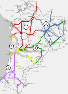 Les cinq lots géographiques du réseau TER de Nouvelle-Aquitaine.