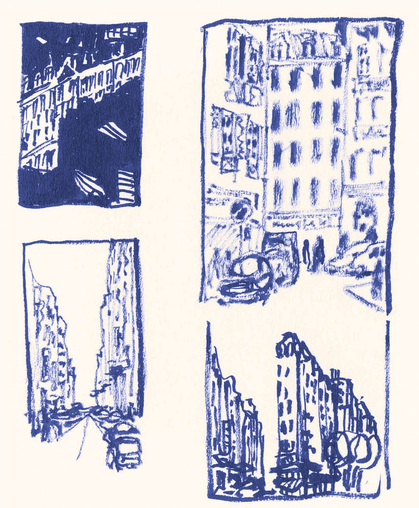 Paris. Dessin de David Mangin extrait de desire lines, éditions Parenthèses, 2015Arlette Farge. Au moment où j’ai écrit sur la rue au XVIIIe siècle, c’était un peu tabou. Cela n’a pas tout à fait intéressé les historiens et j’ai alors rencontré les urbanistes.
