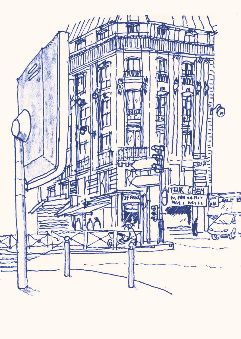 Paris/ Oberkampf. Dessin de David Mangin extrait de desire lines , éditions Parenthèses, 2015David Mangin. Vous parliez de « migrants », même si le mot n’est alors pas utilisé. Il est tentant de faire une transposition avec ce que l’on voit en Chine ou en Afrique aujourd’hui, où il y a beaucoup de migrants, qui se trouvent entre le rural et l’urbain. Comment les migrants rentrent-ils dans la ville ?